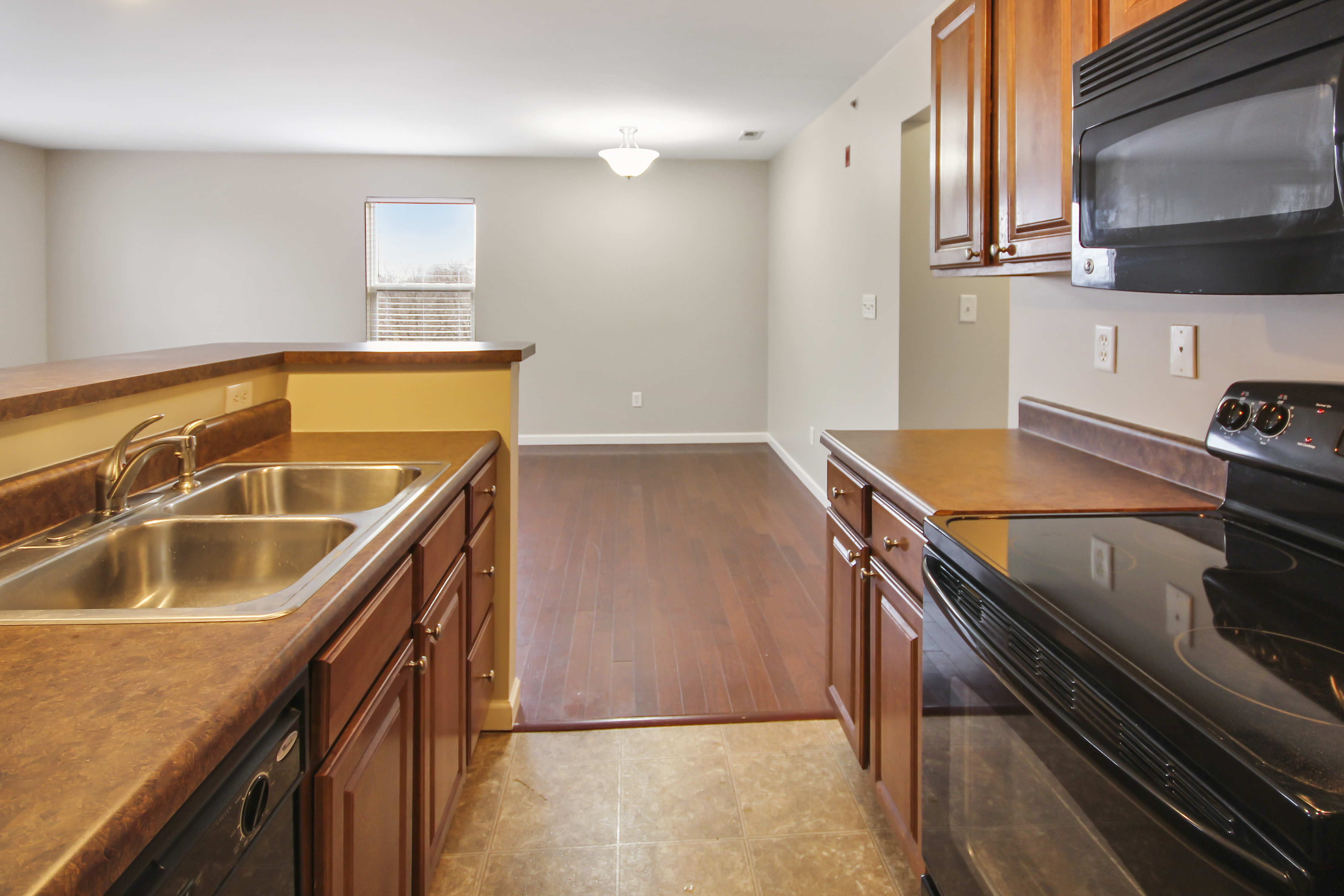 Spacious 2 bed/2 bath second floor Georgetown Park condo with 1 car over-sized garage and large storage space. Beautiful cherry woods floors throughout. The open floor plan features living/dining combo and a galley kitchen with breakfast bar and refrigerator, dishwasher, electric range, and microwave. The master bedroom includes a full bath, walk-in closet, and sliding glass door to private balcony. The laundry room comes with washer & dryer. The basement features a large storage room (10'x15') and over-sized (21'x11') 1 car private garage with opener. This home is pet-friendly with a $200 pet fee/pet and features a community dog park. Tenant responsible for electric, water, and sewer. Security deposit equal to one month's rent.